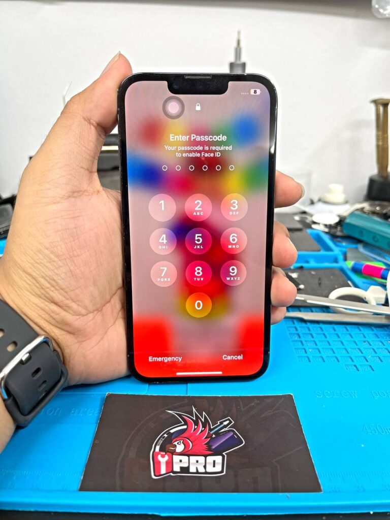 Encik Azman datang ke kedai kami dengan iPhone 13 Pro. Masalahnya adalah skrin berwarna kuning dan tidak boleh digunakan. Ini adalah common problem untuk iPhone 13 Pro series. Proses repair skrin iPhone ini hanya akan mengambil masa selama 1 jam. Juruteknik kami dengan pantas membuka iPhone tersebut. Kami menggunakan teknik ‘jumper’ untuk menyelesaikan masalah ini. Ini bermakna elektrik akan diarahkan ke sumber yang betul. Pelanggan gembira kerana skrin telah dibaiki. Sebarang perkhidmatan repair iPhone kami cepat dan efisien. Kami memastikan pelanggan mendapat hasil terbaik. Repair skrin iPhone anda di kedai kami dengan penuh keyakinan. Hubungi kami melalui sosial media atau Whatsapp untuk maklumat lanjut.