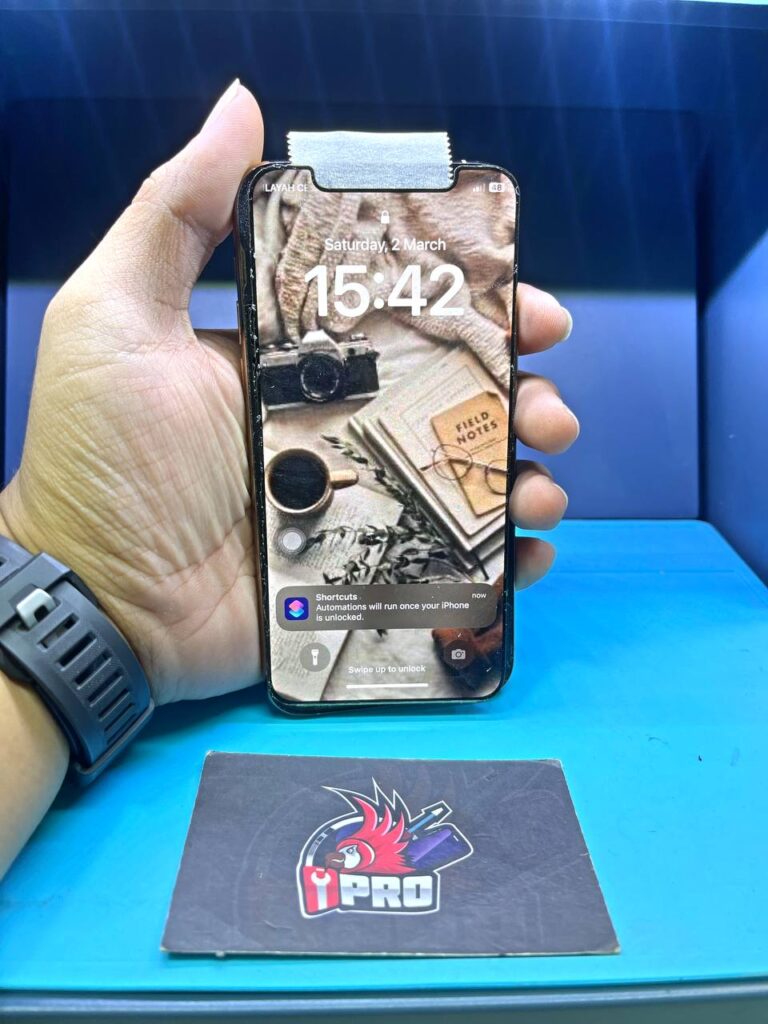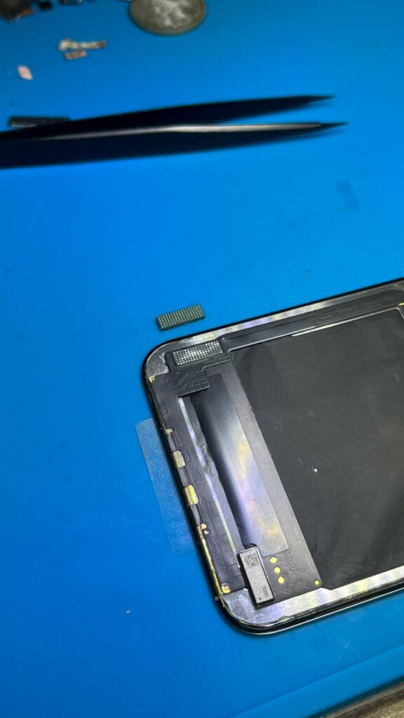 Cik Syaza datang ke kedai kami membawa iPhone 11 Pro miliknya. Masalahnya adalah Skrin ghost touch. Ghost touch ni boleh jadi atas pelbagai sebab, tapi boleh dibaiki. Jadi kami mencadangkan kepadanya untuk tukar screen glass iPhone sahaja. Ini boleh menjimatkan duit daripada tukar seluruh skrin iPhone. Lepas dapat persetujuan daripada owner, technician mula bedah iPhone ini. Technician mencabut kabel bateri dan menanggalkan skrin. Kemudian kami perlu bedah skrin iPhone ini pula. Kemudian, skrin di letakkan dalam mesin pemanas untuk tanggalkan screen glass iPhone. Selesai proses itu, screen glass baru dipasang dan dimasukkan ke dalam mesin vacuum seal. Selesai sudah proses tukar screen glass iPhone. Jadi, kami pasangkan semula pada motherboard untuk pastikan skrin berfungsi sepenuhnya. Semuanya berfungsi dengan baik, tapi ada notification unknown parts.Skrin di tanggalkan semula dan IC transplant bermula. Kami akan menggunakan IC daripada skrin iPhone yang lama dan letak pada skrin baru.